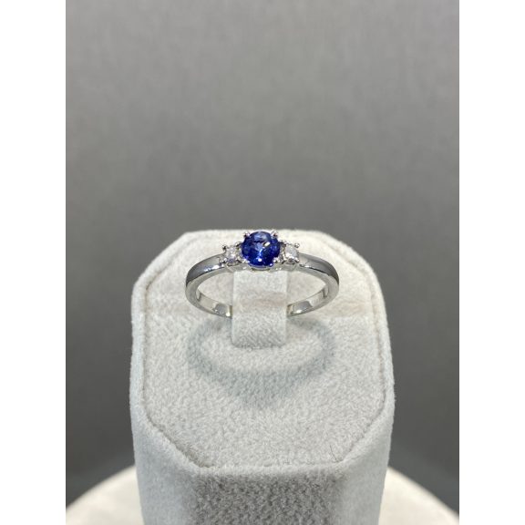 Fehérarany zafír gyűrű gyémántokkal