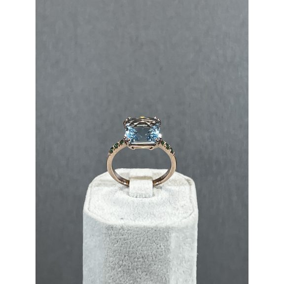 Rozéarany topáz köves gyűrű smaragdokkal